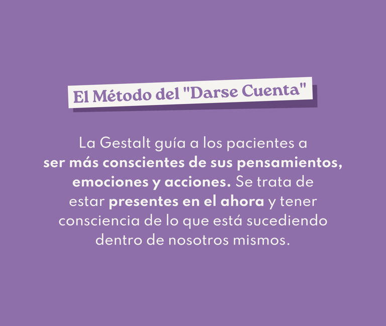 La Terapia Gestalt enseña a las personas a cómo definir la experiencias, lo que esta siendo vivenciado, en lugar de lo que es mera interpretación de los eventos.
